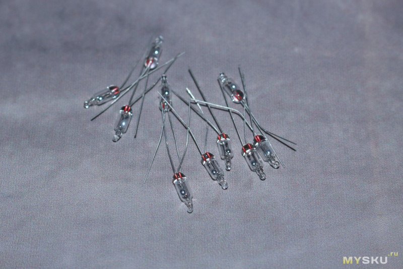 Заказал 10 шт., получил 10 шт. Выключатели представляют собой герметичные стеклянные колбы с шариком ртути внутри.