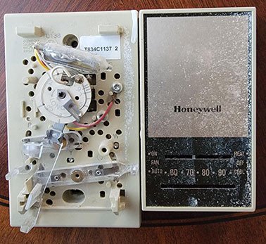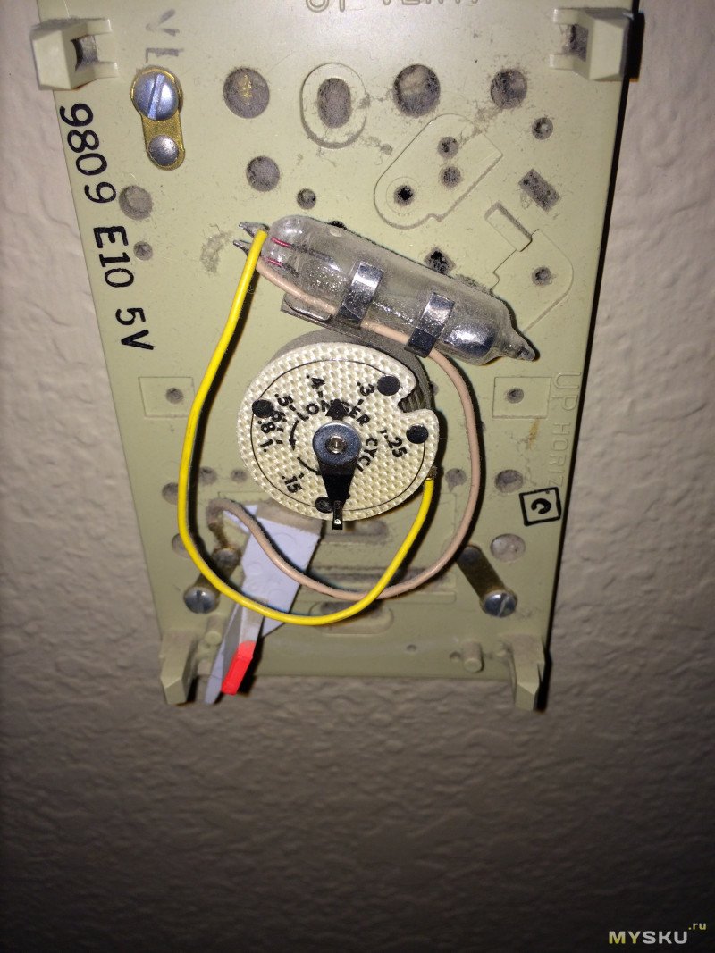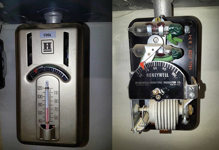 В нацпарке Секвойя, заселились во вполне себе современный коттедж, хотел настроить температуру обогревателя (он под окном стоит и вроде как совмещен с кондиционером), тронул регулятор на стене, крышка отвалилась и там как раз как на фото ртутный размыкатель на биметаллической спиральке, я был очень удивлен.