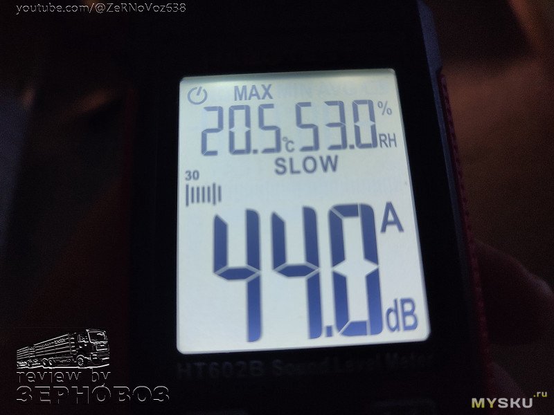 Уровень шума в 20см и в 50см (около 50дБ и 45дБ)