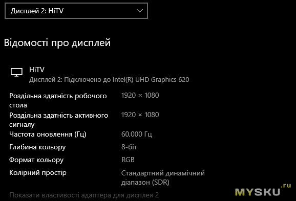 о нет, ноутбук говорит вот такое, привет HD (не фулл) и 30Гц, нервы не выдерживают — подключаем по HDMI