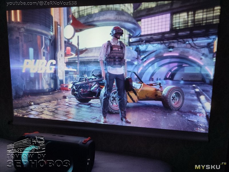 включаем в комнате свет (лампочки 3 х 10Вт), смотреть далеко не так уж и комфортно (если речь идёт о кино), но в целом — информацию показывать можно, таблицы, презентации итд, но лучше таки полумрак