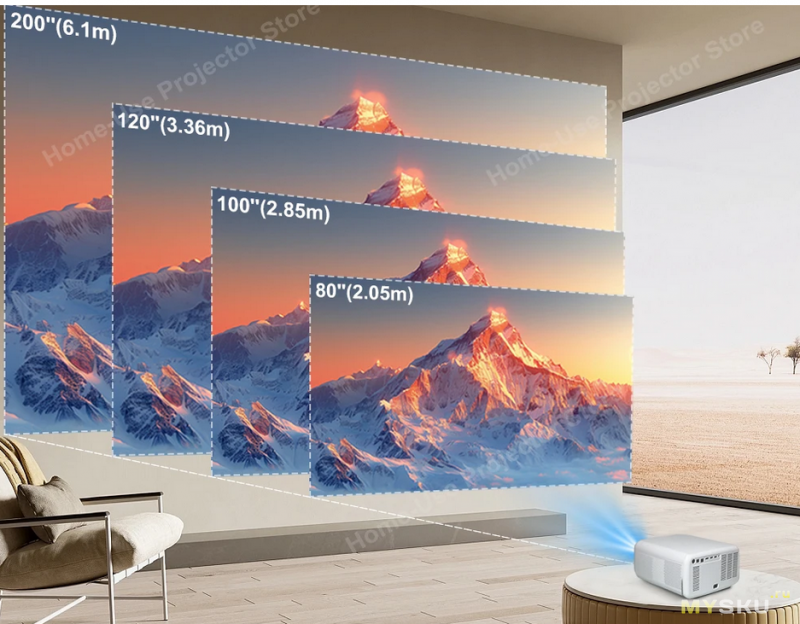 ● Размер проекционного экрана (диагональ): 40" ~ 300" (1м ~ 8м)