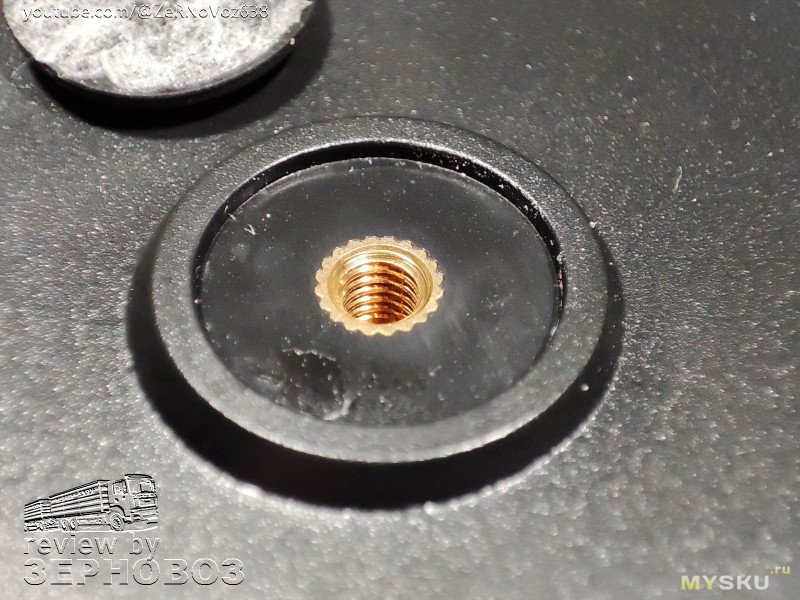 по центру гайка под крепление 1/4" (стандартное для многих штативов),