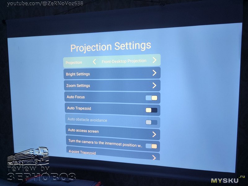 настройки проекции, типовые, пояснять не буду, трапеция, автофокус, 4 точечная и 4 сторонняя коррекция ну и прочее