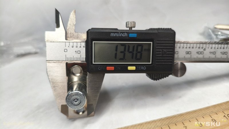 Диаметр корпуса замка — 16 мм, ригеля — 13.5 мм. Длина замка 62 мм, вылет ригеля — 18 мм