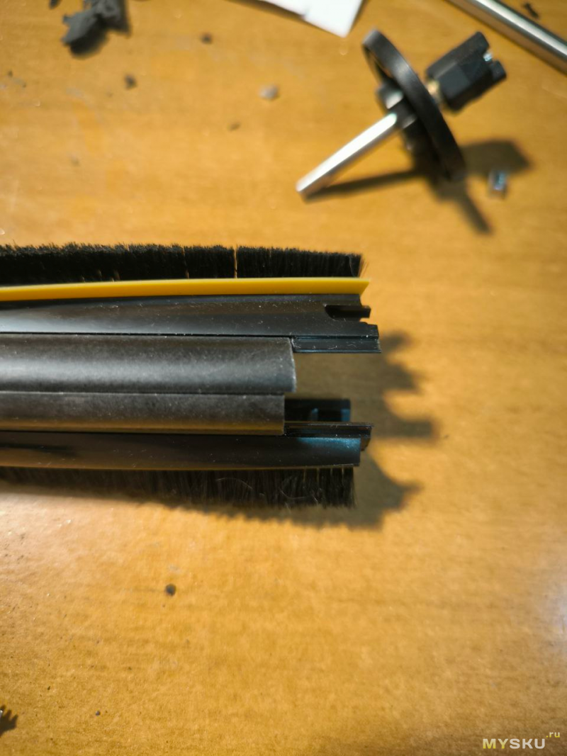 Когда полностью собрал щётку и надел назад на неё ворс, его тоже пришлось срезать. Здесь видно что две половинки срезанны неровно, потом я их подровнял уже после сборки, и тут же и ворс срезал.