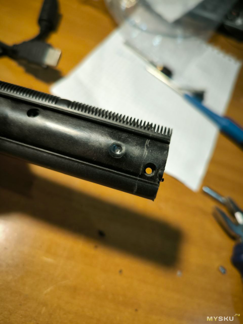 Следующий срез полностью забрал одно из отверстий которым скреплялись две половины щётки