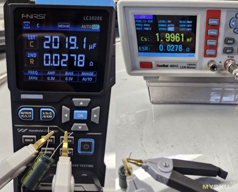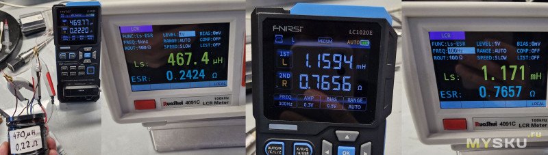 На индуктивность влияет металлический верстак.Погонял на разных компонентах, после калибровки сходимость результатов хорошая, а на мелкие расхождения влияют настройки (диапазон измерения, уровень сигнала и частота).