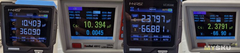 Или конденсаторы 400В на 100мкф, правильно проверять их емкость на напряжении смещения 400в (если другое не указано у производителя), нам же достаточно проверить их емкость и ESR без смещения.