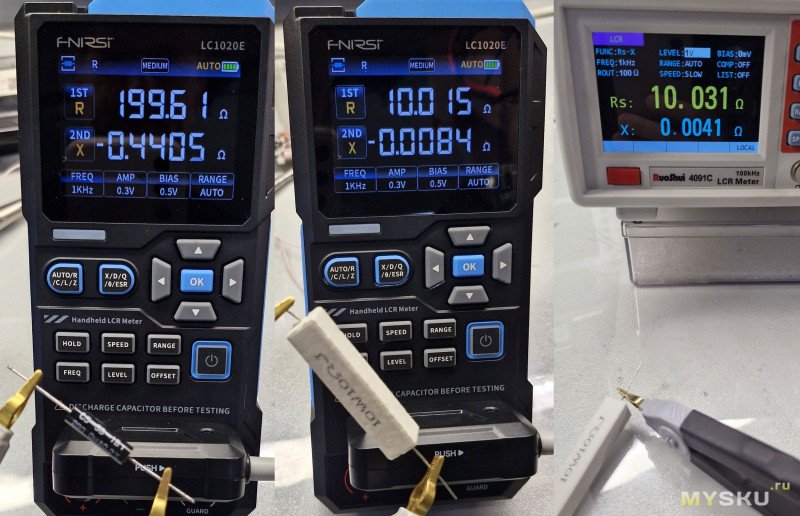 И снова прибор Fnirsi. Сегодня рассмотрим портативный LCR-метр с возможностью работы по четырехпроводной схеме (щупы Кельвина). Новинка позволяет проводить многопараметрические измерения с компонентами (сопротивления, индуктивности и конденсаторы) для диагностики и сортировки. Точность отображения величин 4 знака после запятой. У измерителя цветной дисплей TFT с диагональю 2,8 дюйма, калибровка, режим сортировки по допуску в %, и емкий аккумулятор 3000 мАч. Сравним показания с более дорогим настольным прибором RuoShui 4091c. Краткий обзор под катом.