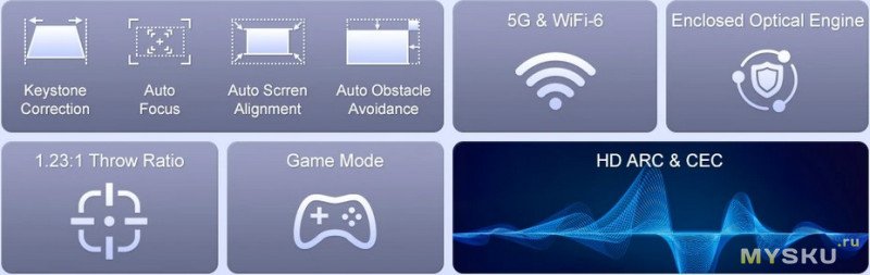 ● Smart Auto Correction – Auto focus, keystone, screen fit & obstacle avoidance (полная автофокусировка)