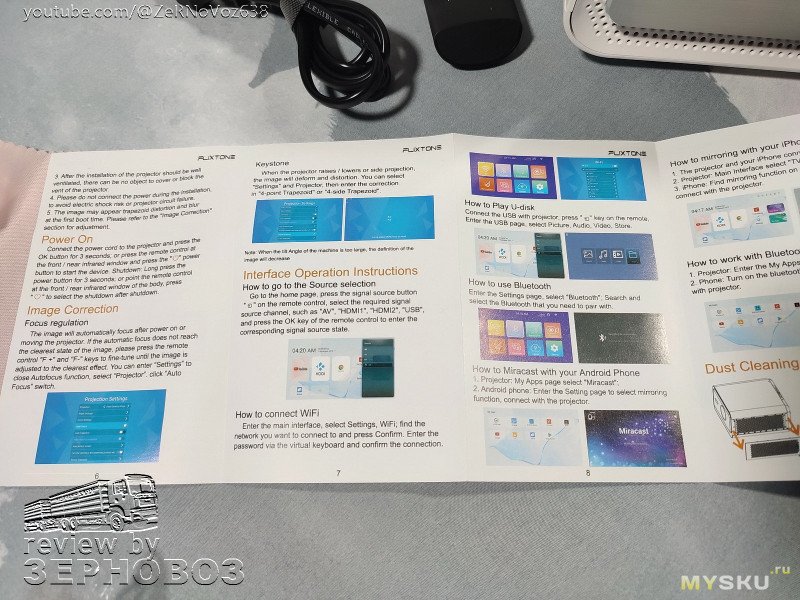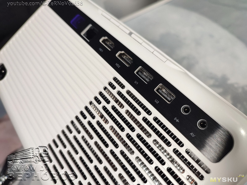 Всё те же радости бюджетного проекторо-строительства как и во многих проекторах что я видел в виде костыля-беспровода. Он как бы есть и даже в данном конкретном случае подключается без танцев с бубном (обычно с танцами). Но такое — потому что картинка прям страдает. И опять возвращаемся к тёпло-ламповым методам подключения кабелем HDMI и связке с ноутбуком или тв-боксом.