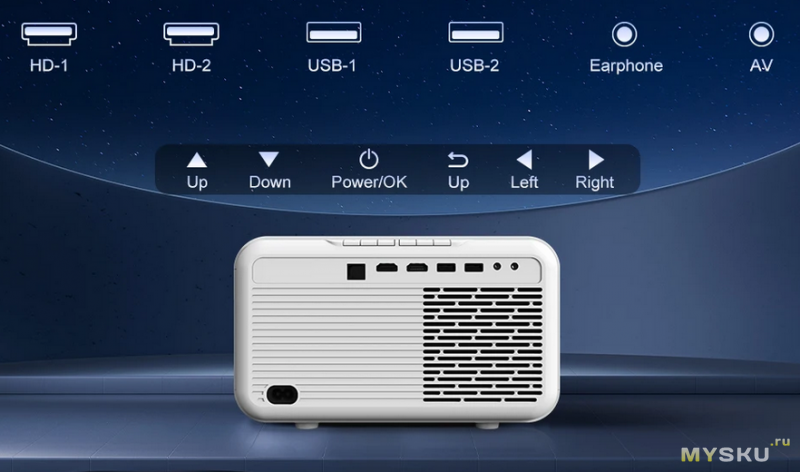 Характеристики — Упаковка и комплект — Внешний вид — Меню проектора — Оценка яркости / освещённости — Слайды — Выводы — Код скидки