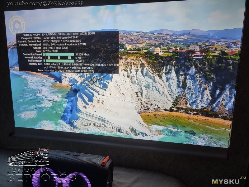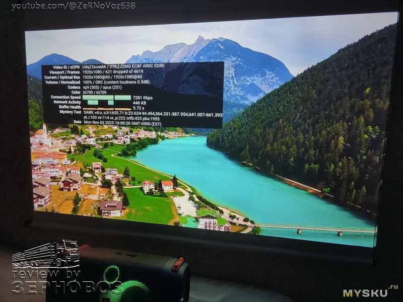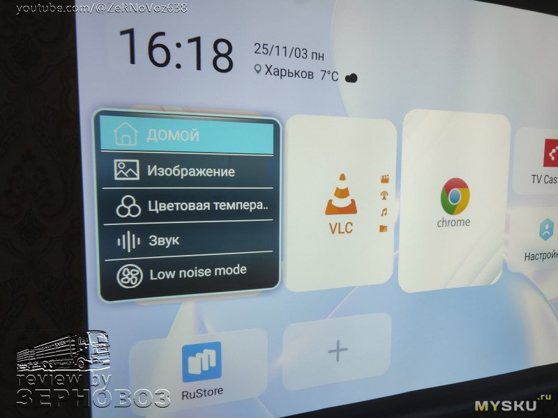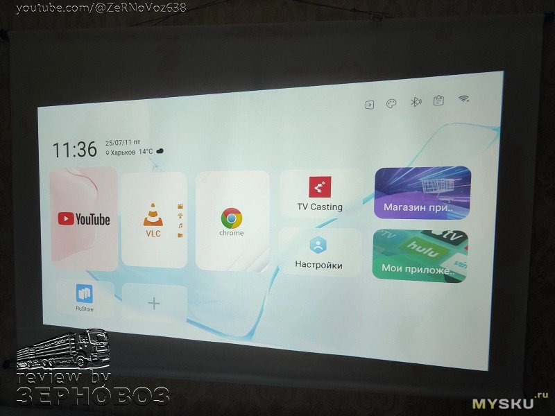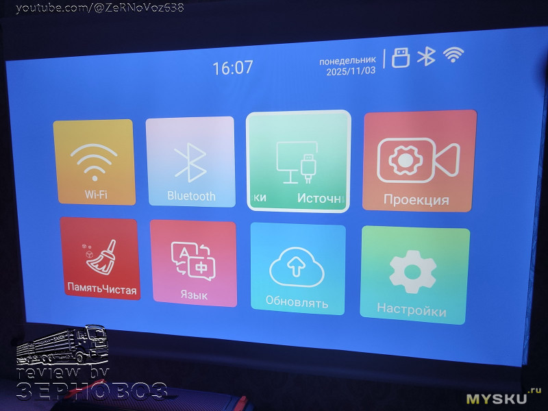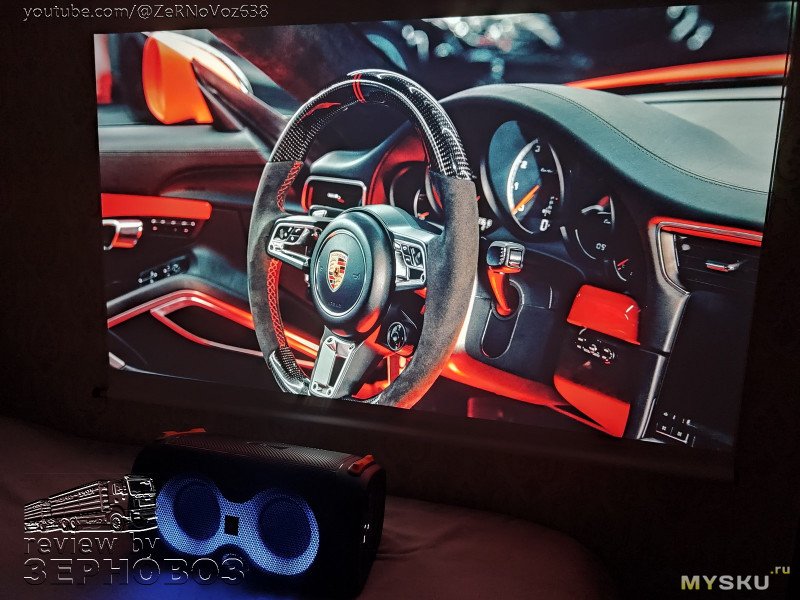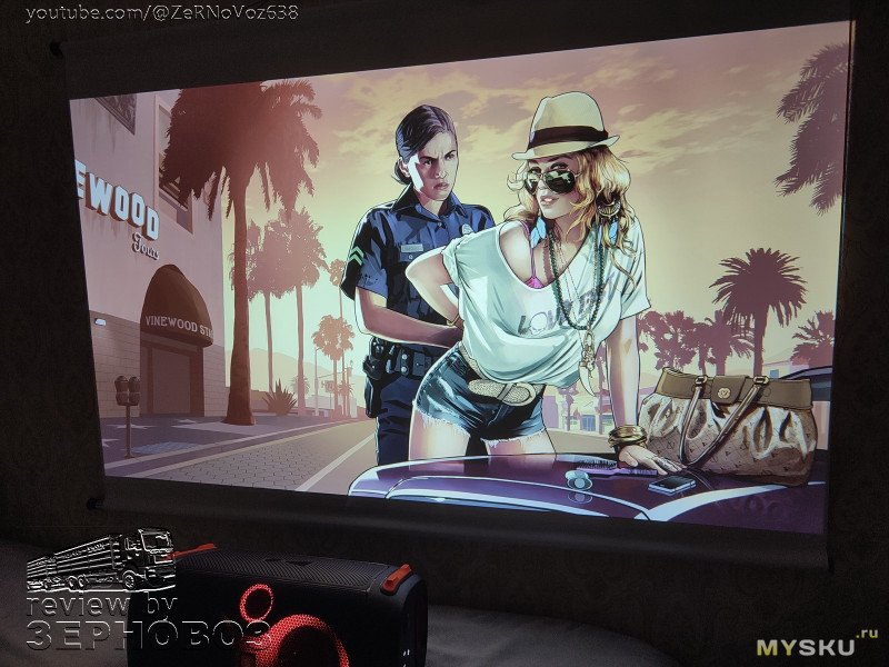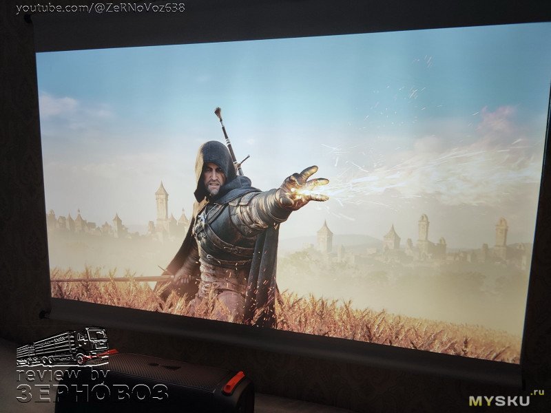 Яркость и картинка — очень классные. Несмотря на завышение в характеристиках (так делают почти все — указывают гиперболизированные для конкурентной среды цифры). По факту же в обзоре рассказ об очень и очень ярком проекторе. Можно смотреть даже в довольно светлом помещении (но лучше затемнить — это касается также почти всех проекторов).