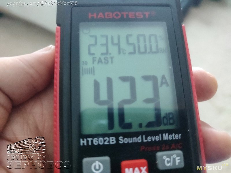 Уровень шума в 20см и в 50см (около 50дБ и 40дБ)