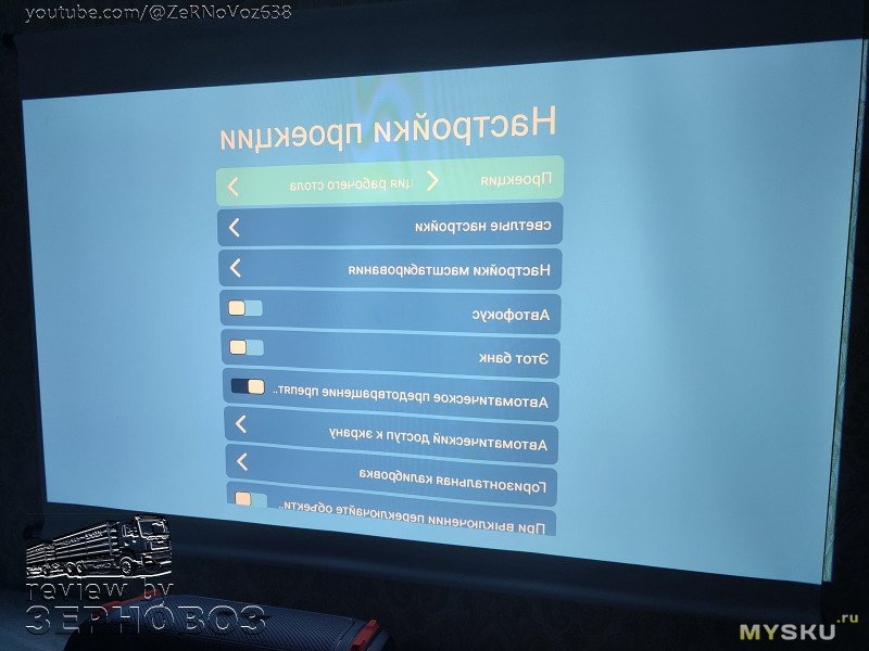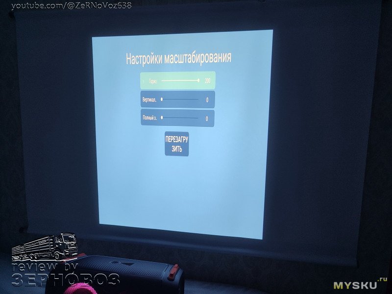 можно по разному масштабировать изображение. но!!! вот тут пошли радости от слабого процессора — всё тупит и работает медленно, из хорошего — настройки трапеции запоминаются при выключении (ну хоть что-то)