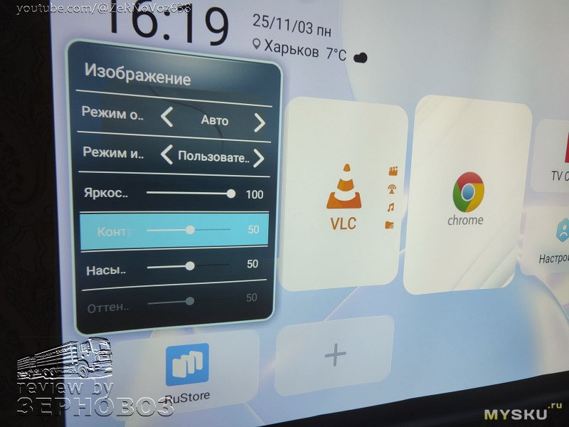 Доступны некоторые настройки в режиме просмотра контента. Настраиваются яркость, цветовые диапазоны, эквалайзеры звука и некий режим низких шумов