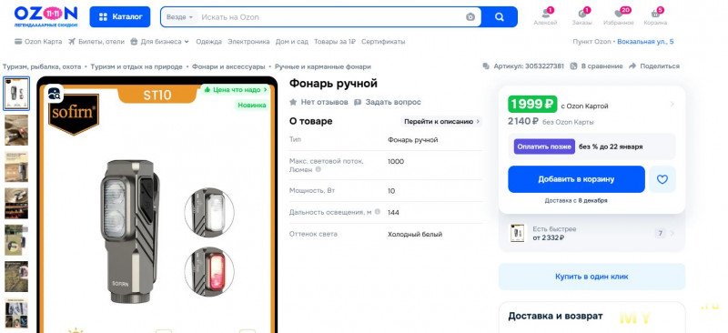 EDC-фонарик Sofirn ST10 далеко не идеален, но очень неплох за свою цену (меньше 2к). Тут упор на удобство ношения (масса/размеры необременительные) и крепления (клипса и два магнита). Универсальность (три вида света и возможность поставить батарейки), широкая сфера применения (и с собакой погулять и в щиток посветить, в палатке повесить) — яркости везде хватит. Хотя 1000 люмен это маркетинг, реально на дистанции тут меньше.