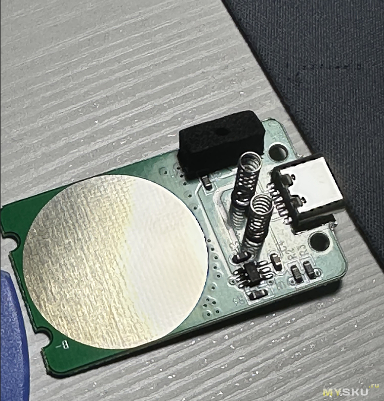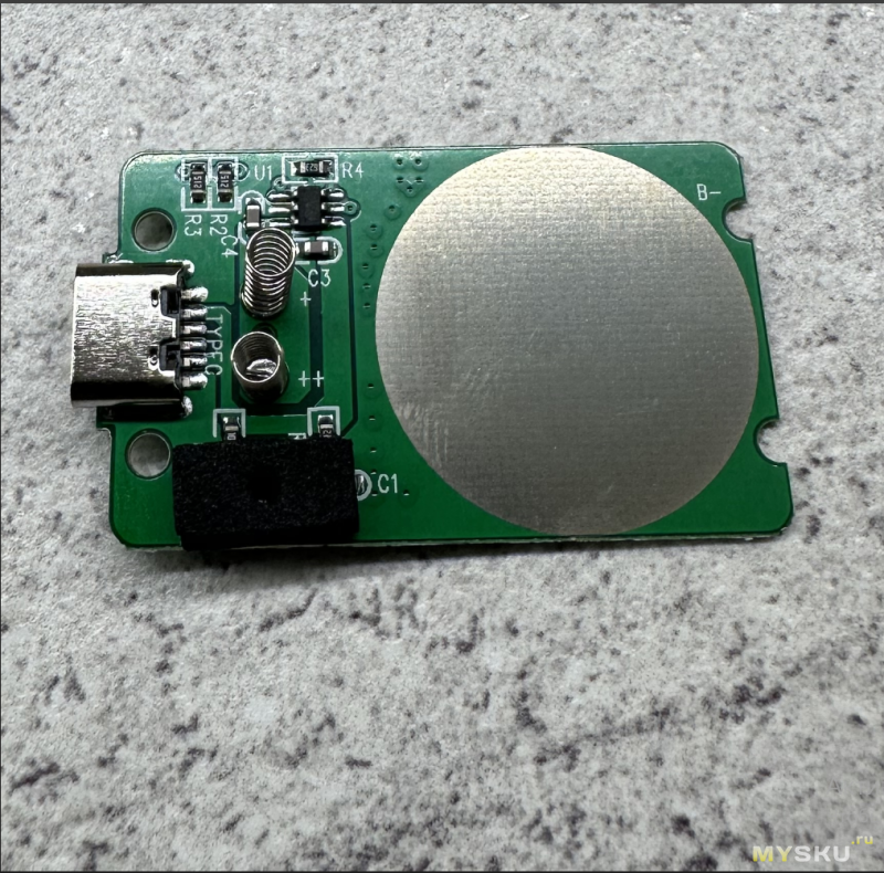 Питание подается через разъем Type-C. Аккумулятор удерживается подпружиненной лапкой.