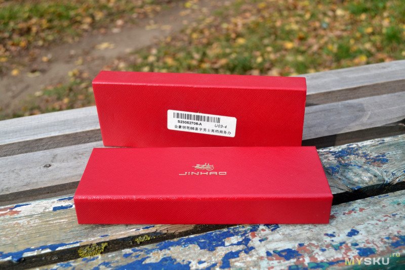 Но вот не все читатели знают, что Jinhao специализируется не только на выпуске недорогих пишущих инструментах. Компания начинала с выпуска коробок. Простых, красивых и дорогих из драгоценных пород дерева, кости и кожи редких животных. Перед вами классическая китайская коробка в тисненом коленкоре. Такие коробки обычно содержат деньги или недорогие, чаще символические подарки родным и знакомым.
