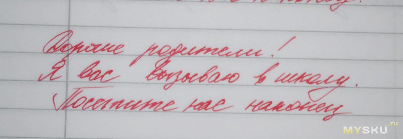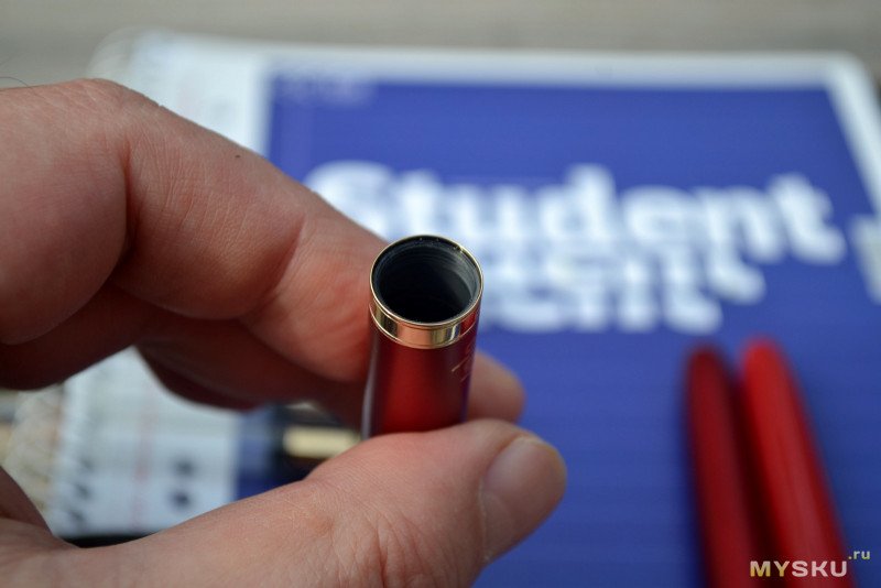 Ручка для человека, который прежде подумает, чем что-то записать. Неопытные пользователи снимают колпачок рывком, что приводит к разрыву внутреннего колпачка из серо-черного полиэтилена. А внутри-то колпачок винтом закреплен. При разрыве приходится или брать колпачок с донора, или возиться с клеем или подкладыванием широких шайб. Так что, дорогой друг. Не давай свою ручку в чужие руки. Дешевле держать расходную ручку. Во избежание.