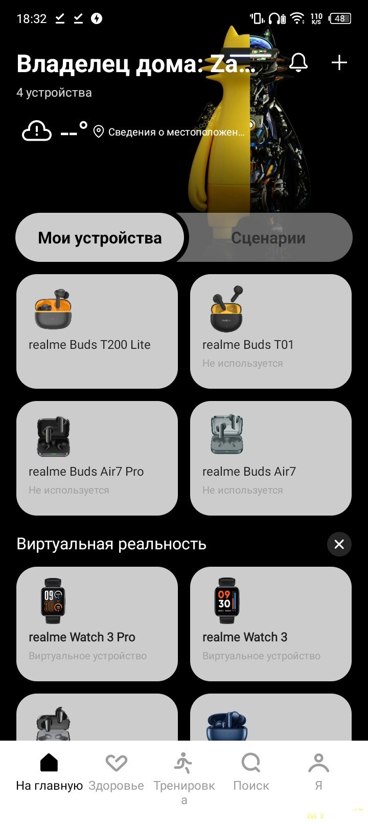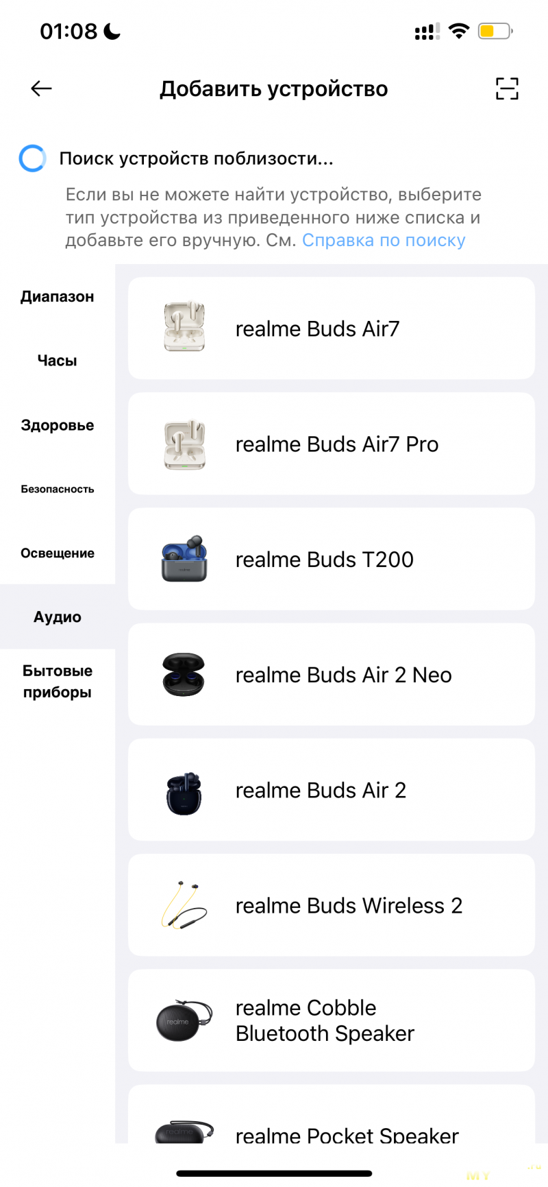 Открыв Realme Link, я с удивлением (не в первый раз, в прочем) наблюдаю картину отсутствия Realme T200 Lite в списке доступных для сопряжения и настройки. Опять понадобится Android для более детальной настройки. Увы и ах. Но это не смешно, ведь наушники конкретно для Российского рынка.