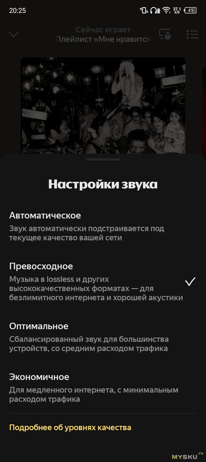 «Яндекс.Музыка» без сюрпризов оперирует наушниками, разница на слух между стандартным качеством и улучшенным действительно ощущается. А что там с Android, как дела у бояр?
