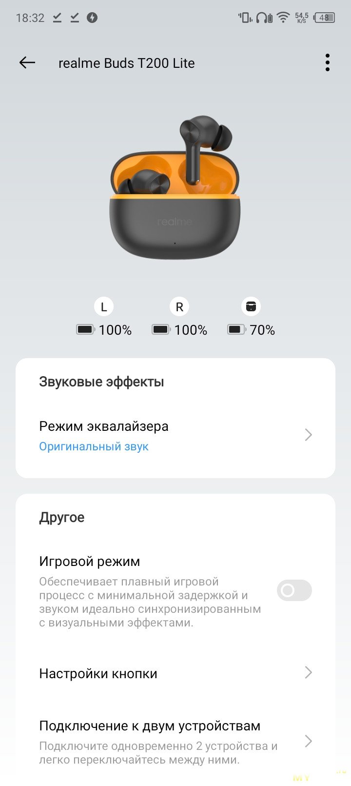 Realme Link автоматически прогрузило наушники после сопряжения, никуда и в никакие настройки Bluetooth ходить не пришлось. Магия, как она и должна быть.