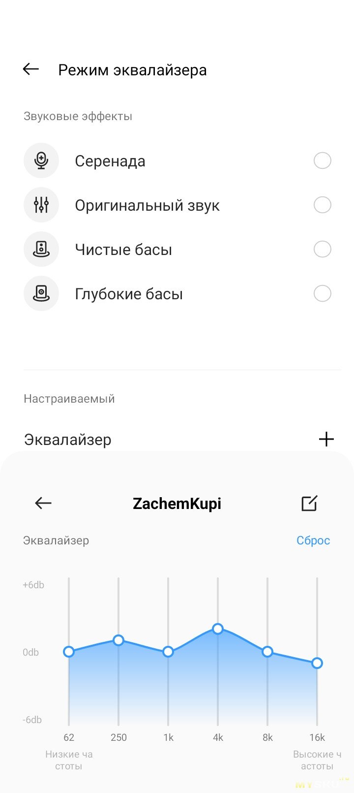 В настройках приложения доступны готовые пресеты, а также эквалайзер, позволяющий точно донастроить звук. А функция пере-настроения касаний и функций позволит повесить определенные действия (например, вызов голосового ассистента) на базовые жесты.