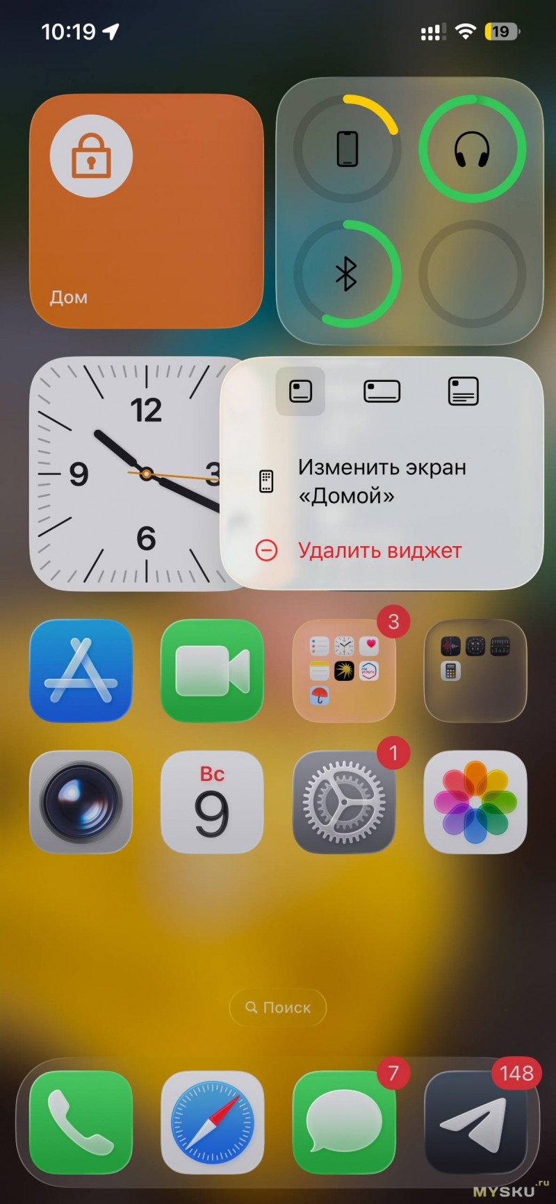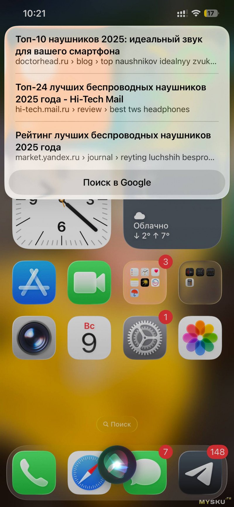 Информацию о заряде можно получить в виджете или в статусной строке. Siri, несмотря на отсутствие настроек в приложении корректно запускается на «Привет, Siri». Ну хоть что-то.