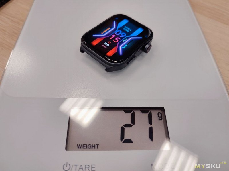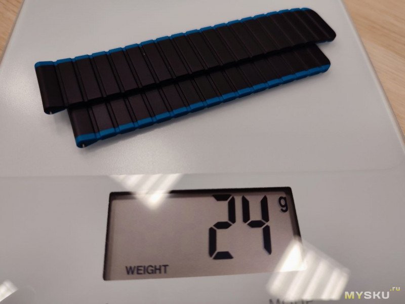На сайте производителя вес часов указан 26,3 гр. на моих кухонных весах у меня вышло 27 гр. но взвесила ещё и ремешки: