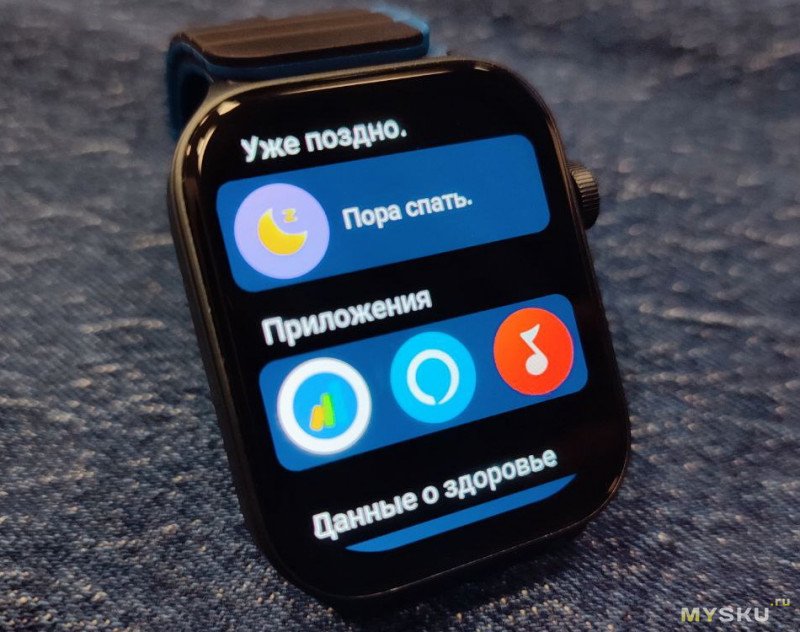 Интерфейс интуитивен: свайп влево открывает раздел «здоровье», вправо — «спорт», вниз — «настройки». Анимации плавные, ничего не тормозит даже при множестве уведомлений.