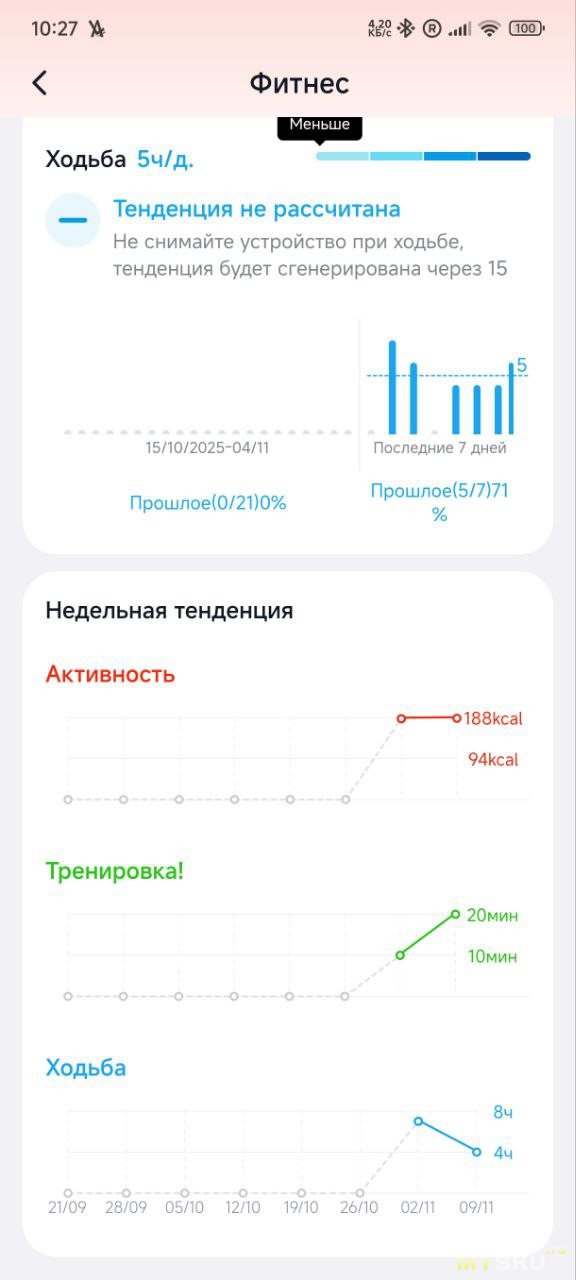 Фитнес и тренировки: отображаются калории, время, пульс, пройденная дистанция, стресс. GPS нет, поэтому маршрут строится через смартфон.