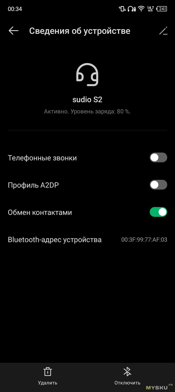 Выбрав в настройках Bluetooth тип устройства соответствующий Sudio S2, колонка корректно прогружается в систему, добавляя функцию вывода звука на внешнее устройство. В общем-то, стандартное поведение обычной колонки. Отображение статуса заряда доступно в статус-баре системы или в виджете зарядки на рабочем столе.