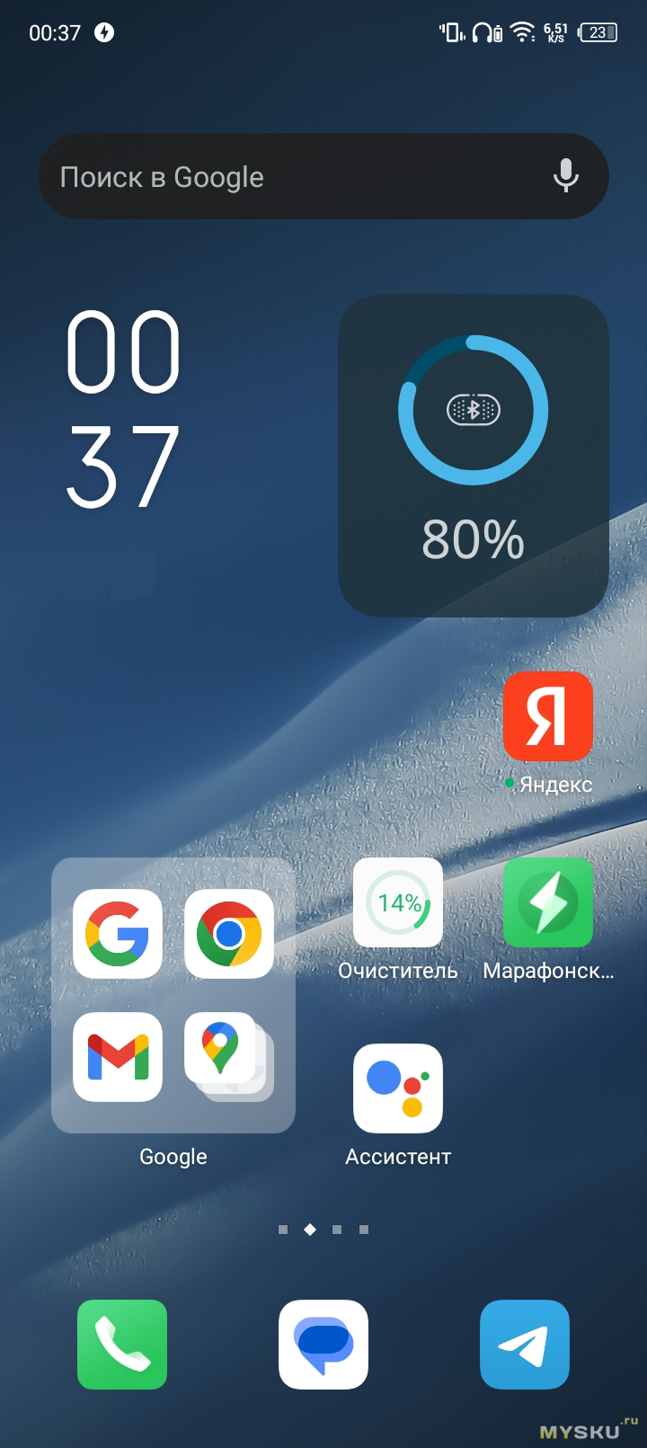 Колонка корректно прогружается в систему как устройство внешнего вывода звука, о качестве звука судить не приходится. Для отображения статуса заряда предлагается пытаться высмотреть статус батареи в статус-баре и не сломать глаза. Для альтернативного варианта я установил платный Battery Widget и настроил вывод отображения статуса заряда на рабочий стол.