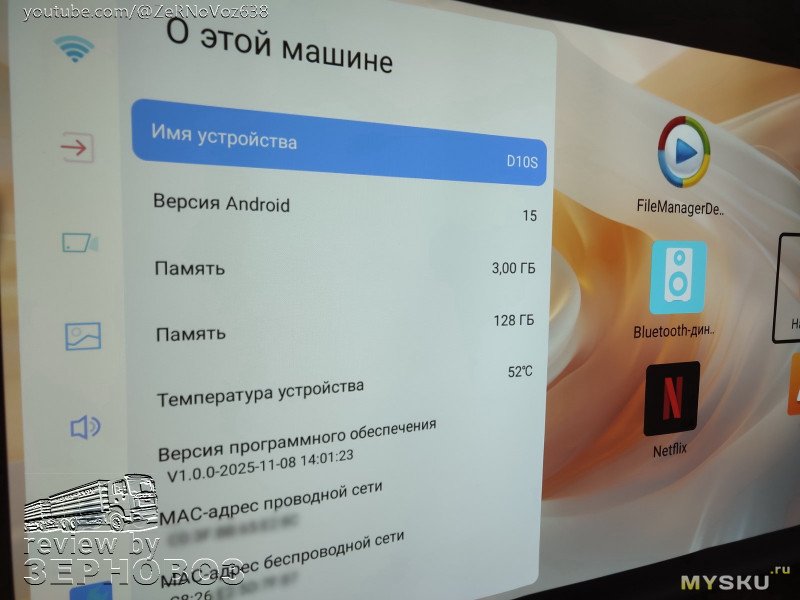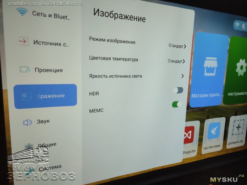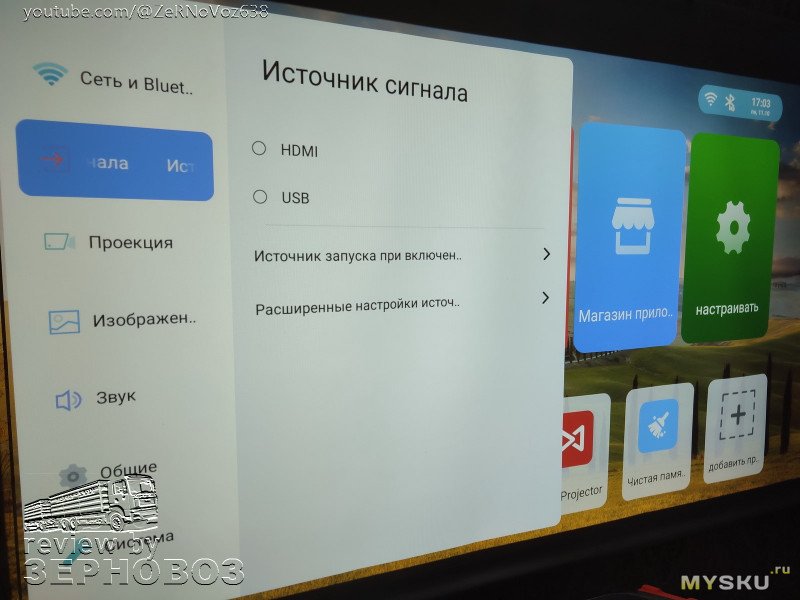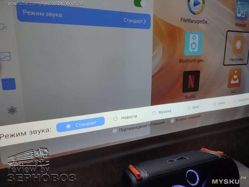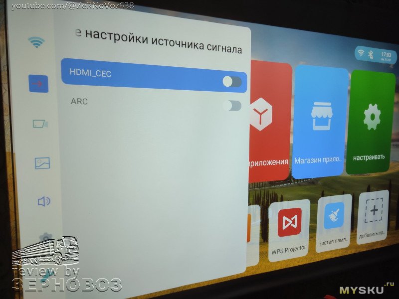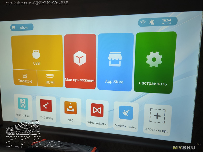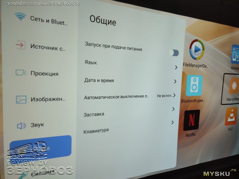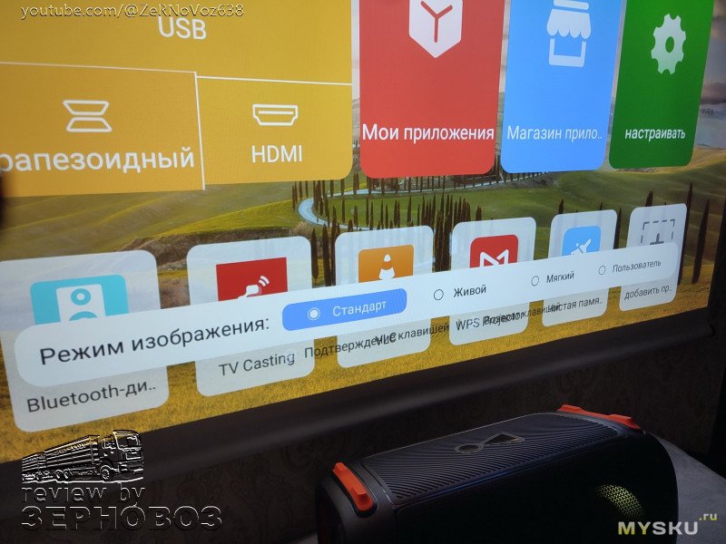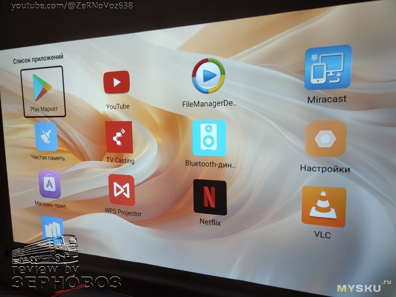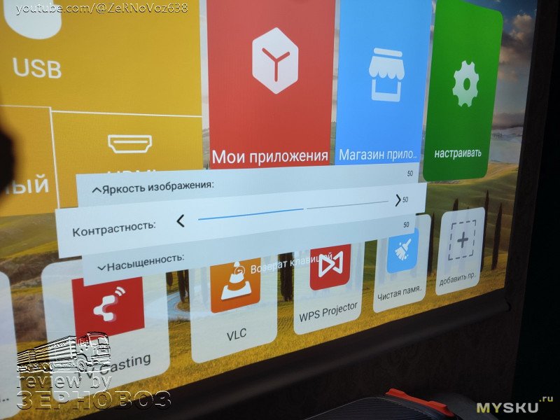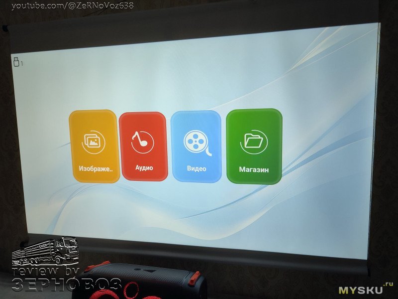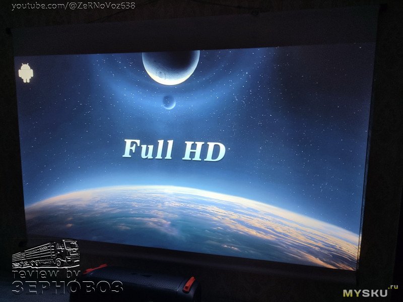 На что обратить внимание: всё тот же шум вентилятора как и большинства проекторов (но здесь хоть понятно что охлаждает ультра-лампу), яркость заявлена 4000 а по факту 1250, звук заявлен прям вообще 3х12Вт, но комфортно лишь на 50% (что очень и очень громко). Вес почти 4кг. Размеры также внушают. Цена, но тут уже приходиться исходить из характеристик. Из коробки лаунчер «привет энтерпрайз-стайл» простенький и ненавязчивый. Хотелось бы более продуманный, а главное чтобы можно было настроить под себя. И да — хотелось бы из коробки и файл-менеджер и проигрыватель сразу нормальный. Из хорошего — мгновенно ставятся аналоги прям во встроенном магазине (без регистрации). Также есть плеймаркет. Ютуб летает.
