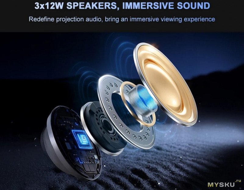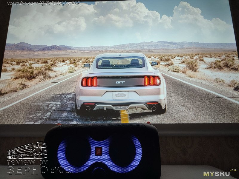 Проектор может работать как беспроводная колонка: экран отключается, звук идёт через встроенную акустику. Для фоновой музыки — работает нормально. Нестандартно и необычно. Ждём новых вариаций на тему. Непонятно как обходить физические ограничения размеров. Но идея витает в воздухе.