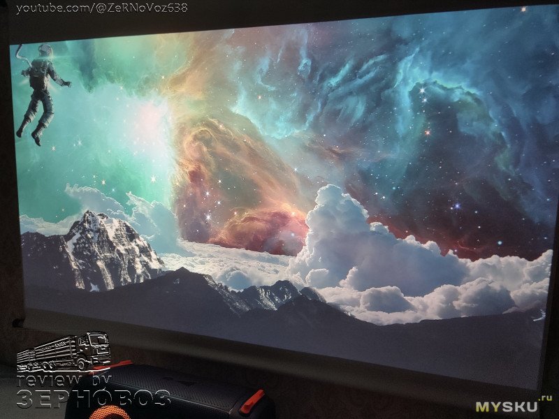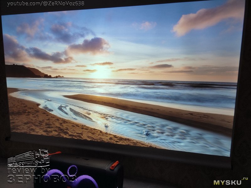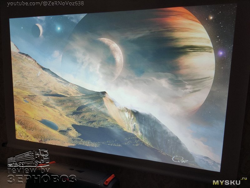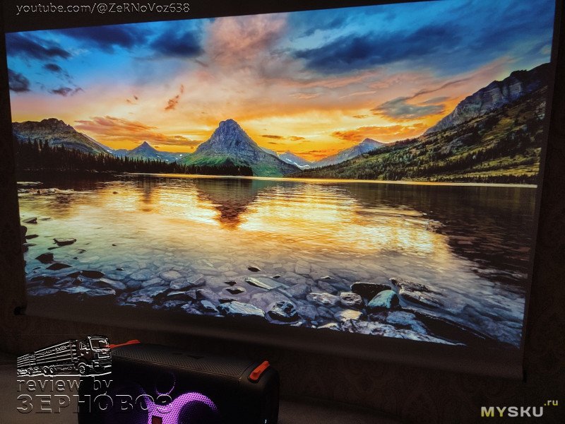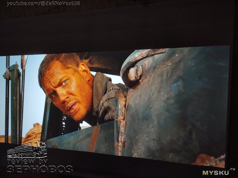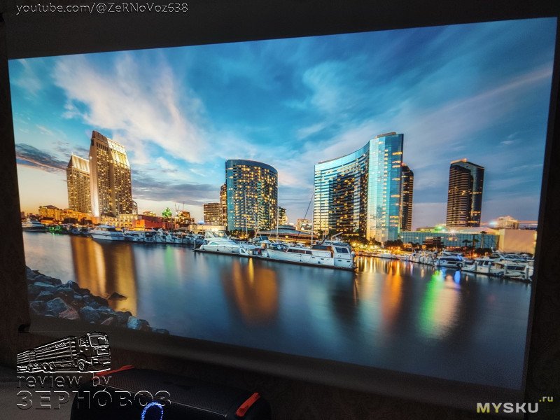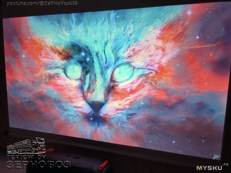 Цвета ровные, без перекосов. Привет большая линза и система линз в целом. Резкость по всей площади хорошая, автофокус работает чётко. 1080p выглядит максимально чисто. Широкие настройки цветности, температуры и прочее. Уверен, что проектор легко вытянет 8 метров диагонали. Тем более яркости хватит вообще без проблем.
