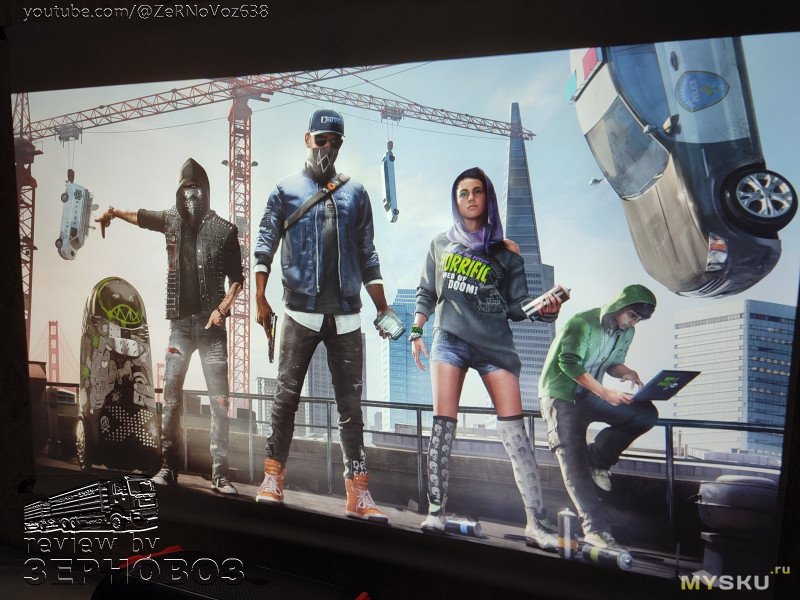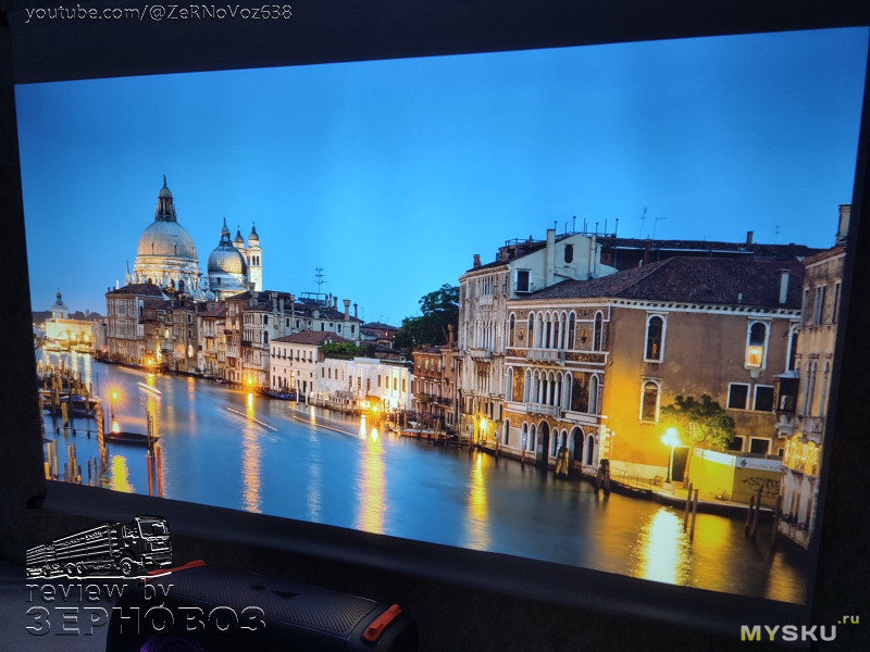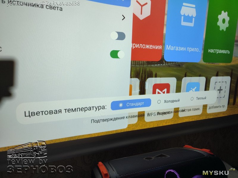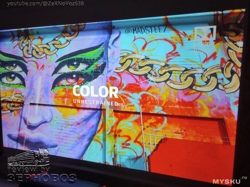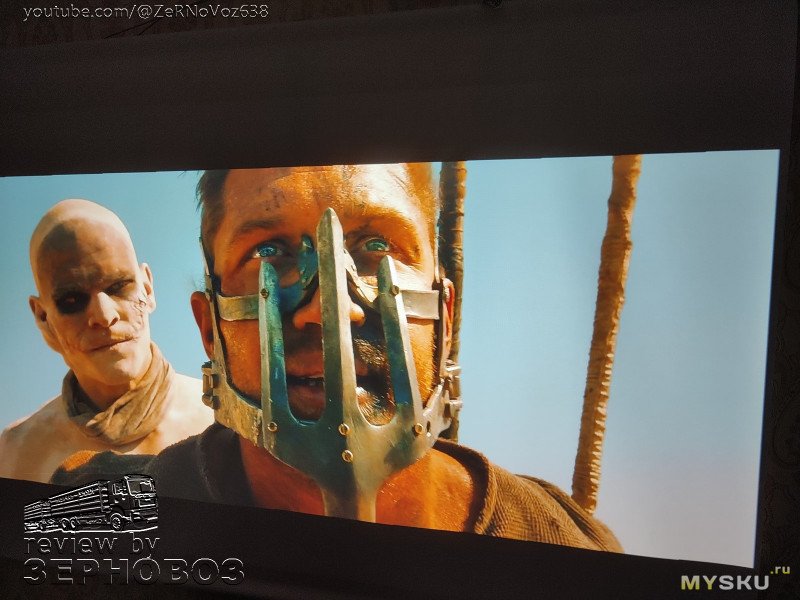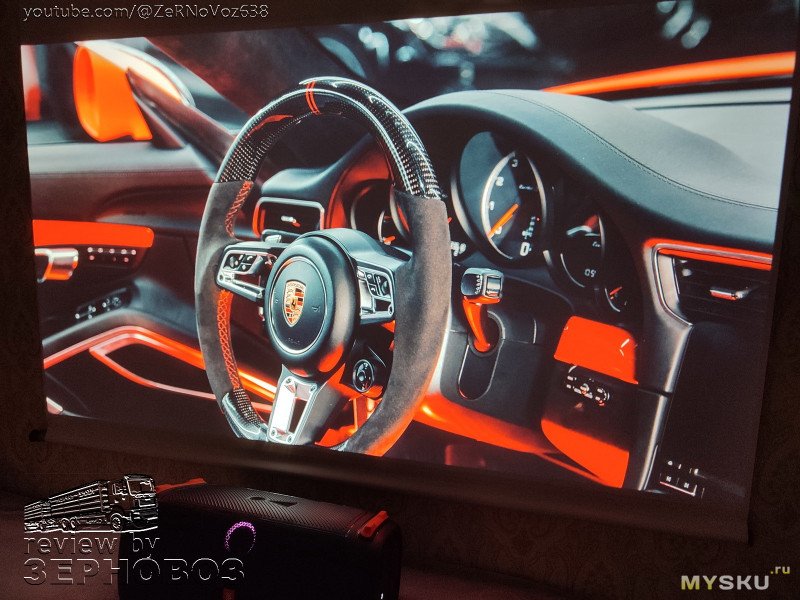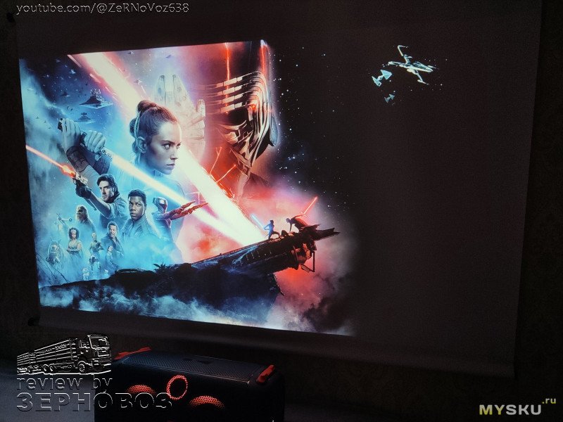 Цвета ровные, без перекосов. Привет большая линза и система линз в целом. Резкость по всей площади хорошая, автофокус работает чётко. 1080p выглядит максимально чисто. Широкие настройки цветности, температуры и прочее. Уверен, что проектор легко вытянет 8 метров диагонали. Тем более яркости хватит вообще без проблем.