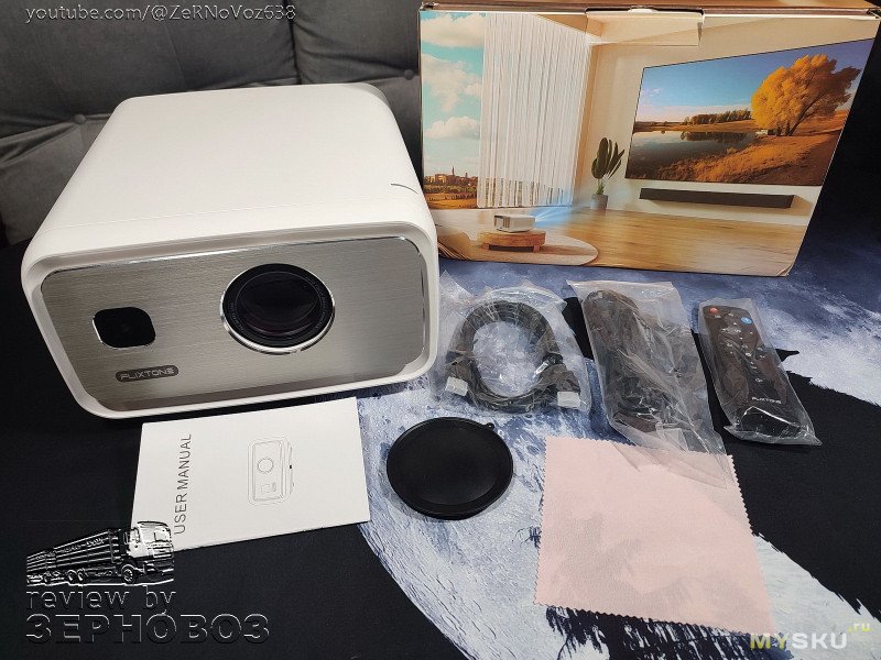 Комплект: проектор, пульт, кабель питания, HDMI — HDMI (визуально хорош), инструкция, тряпочка для линзы и крышка.