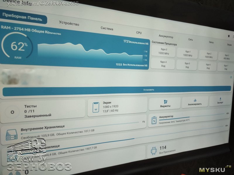 Android 15 (ещё раз — Android 15). Он летает. В этот раз именно 3 ГБ ОЗУ полностью по делу, ничего не подвисает. YouTube 4K, видео через плееры, интерфейс — всё быстро. Процессор с запасом, 4 ядра спят, а 4 работают. Такое распределение — нормальное поведение SoC: часть ядер включаются лишь при пиковой нагрузке. Не заикаются и не подвисают. Скорость. Это хорошо.