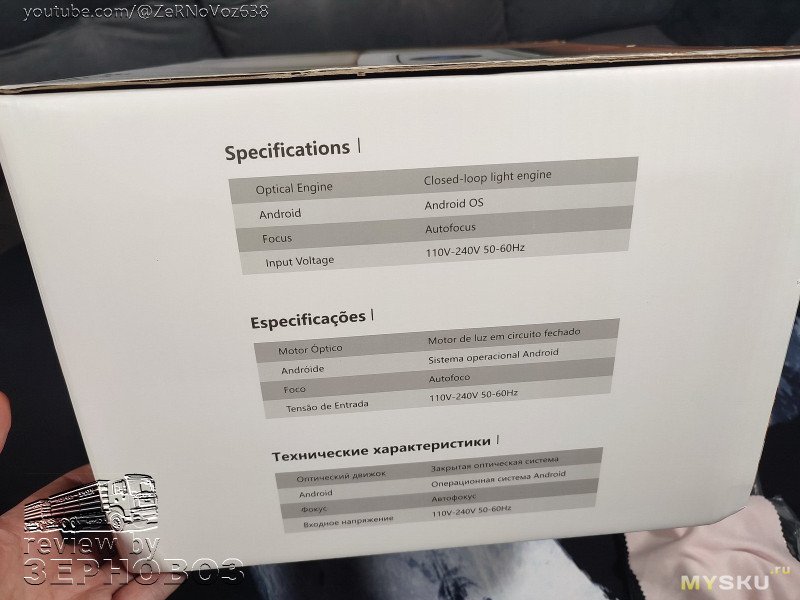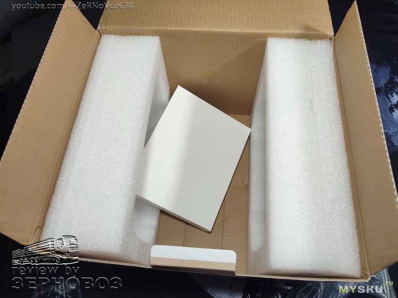 Внутри всё надёжно зафиксировано: толстые демпфирующие вставки, проектор упакован в мягкий материал, есть отдельный коробок для аксессуаров. Почта не помяла и не повредила, это огромный плюс (потому что такие габариты и вес 3.8 кг — это уже серьёзно).