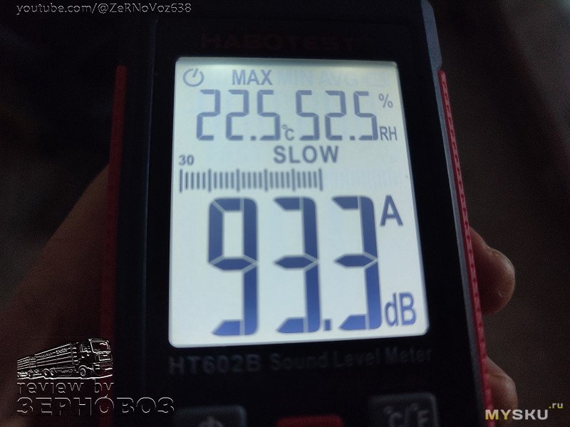 сразу же замерим максимальную громкость встроенных динамиков, но сразу же скажу, что на этой громкости смотреть в комнате до 20кв.м не комфортно, громко, орёт