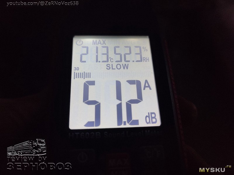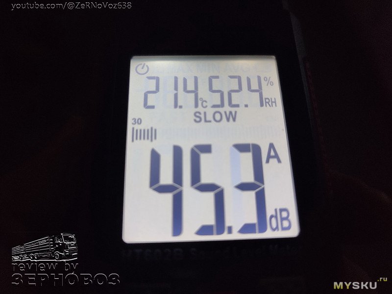 Уровень шума в 20см и в 50см (около 50дБ и 45дБ)