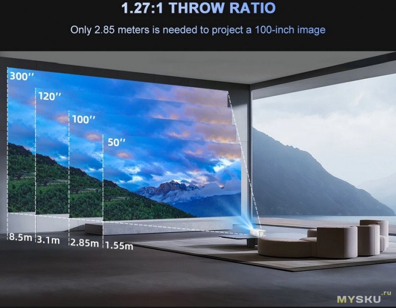 ● Размер проекционного экрана (диагональ): 40" ~ 300" (1м ~ 8м)