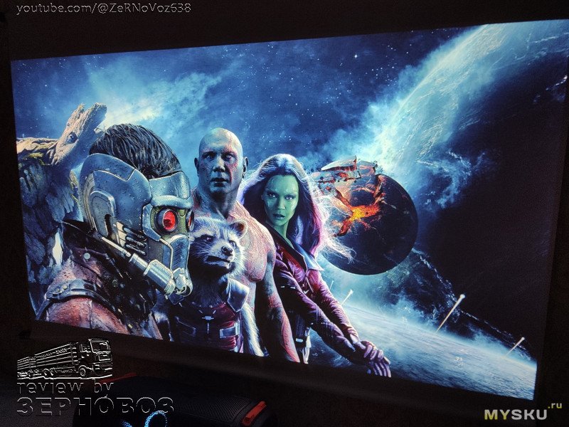Учитывая засветку, чёрный физически не абсолютный (ожидаемо), но при этом картинка смотрится комфортно, а яркие сцены выглядят потрясающе.