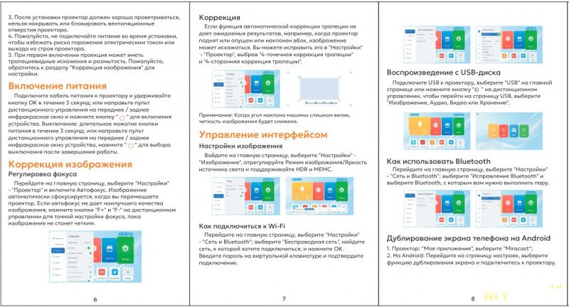 Автофокус, 6D Keystone, авто-зум, авто-avoidance — всё позволяет поставить проектор «как угодно» и получить правильный прямоугольник (выровнять трапецию).