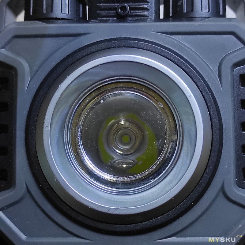 ** Нажатие кнопки при включенном фонаре переключает источники света, первое нажатие после включения переключит с широкого COB на узкий свет от отражателя.