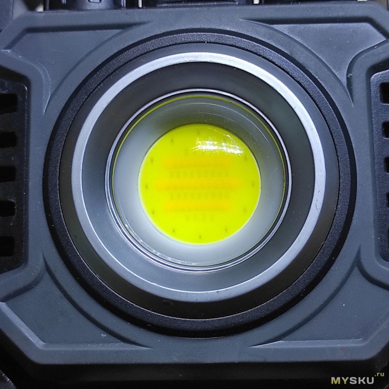 1) COB светит широко, может светить белым с регулировкой яркости и плавным выбором цветовой температуры. Он же может светить или мигать красным. Частота мигания и яркость красного не регулируются.