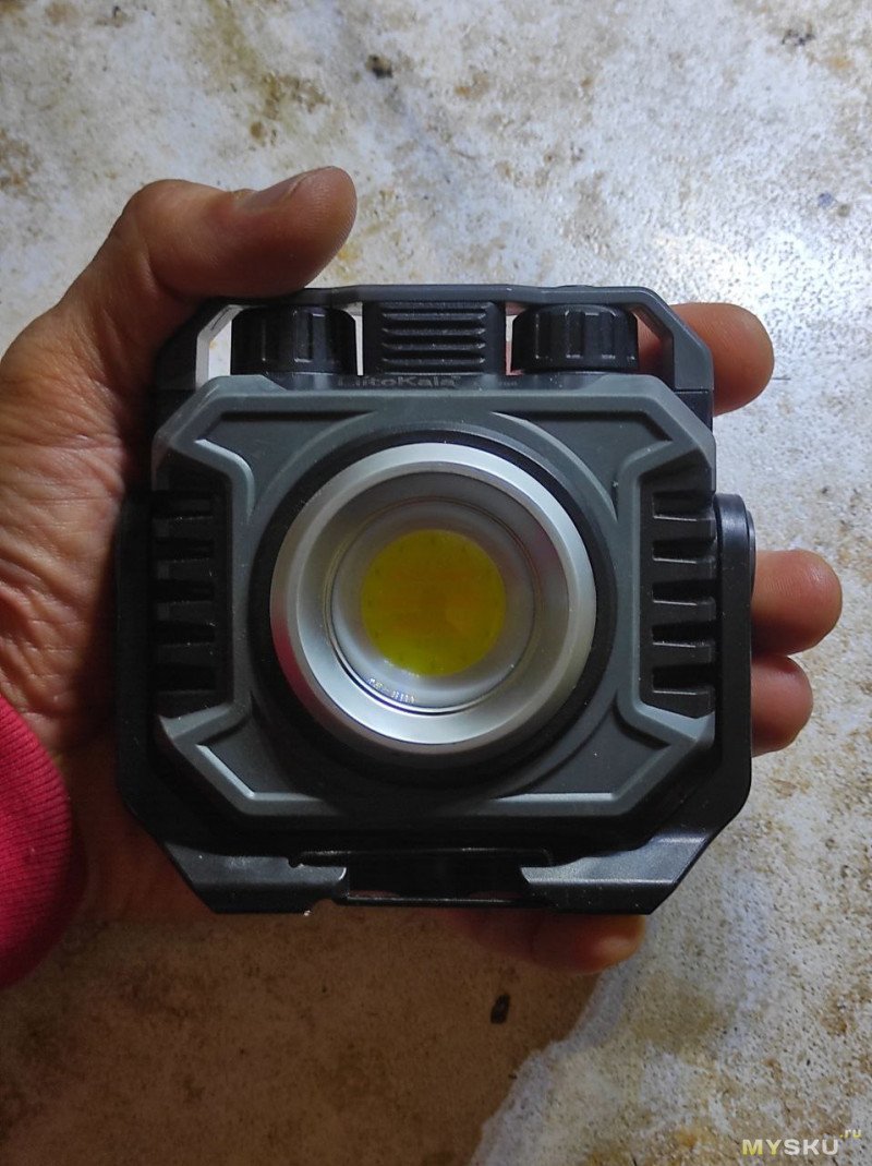 Размер фонаря примерно 10*10*5см и он хорошо помещается в мою руку.